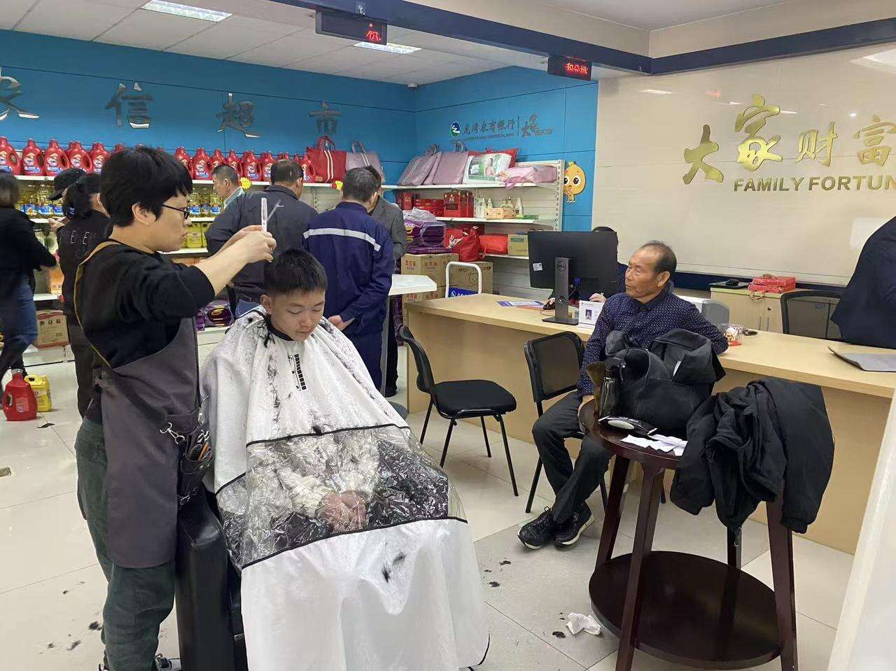 当日上午9时许,驿站内各服务区域已井然有序,来自各行各业的居民群众陆续前来。免费理发区前,志愿者娴熟地为老年人修剪头发,细致询问需求;健康检测区里,社区卫生服务中心的医护人员耐心为群众量血压、测视力,同步普及冬季养生知识;法律咨询台前,司法局工作人员与“龙湾老娘舅”公益团队共同坐诊,为外来务工人员解答网络防诈、劳动纠纷、合同签订等疑问;招工招租服务区则张贴着最新岗位信息与租房资源,方便企业员工利用休息日对接需求。