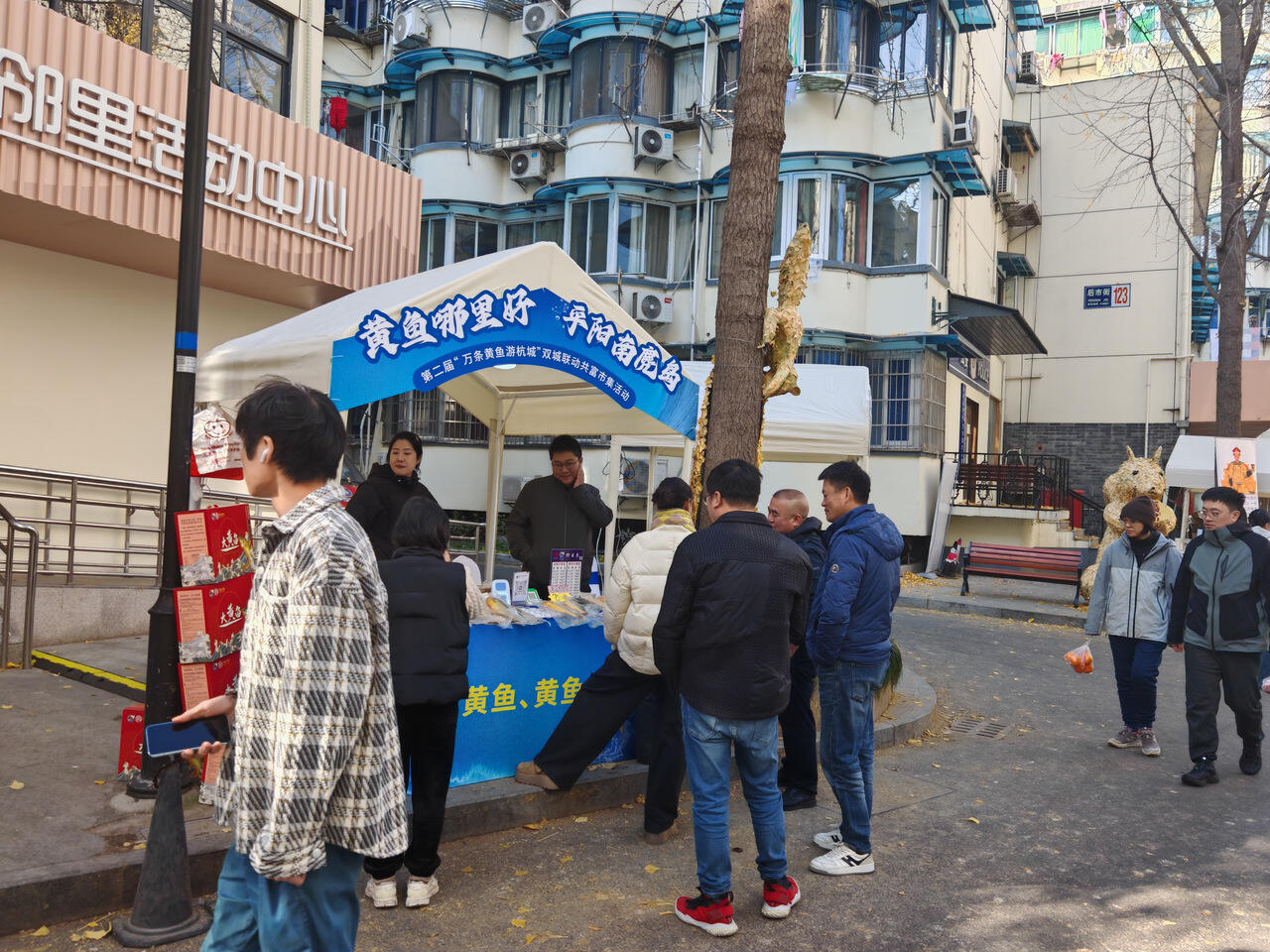 浙江在线12月16日讯(通讯员 徐斌)冬日暖阳透过金黄的银杏叶,洒在杭州市上城区后市街社区熙熙攘攘的人群间,空气中也弥漫着大黄鱼的鲜香。近日,由杭州市上城区清波街道与温州市平阳县联合举办的“万条黄鱼游杭城”双城联动共富市集在后市街社区的银杏林下热闹开市。