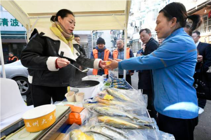 本次活动采用“产地直送+社区直达”模式,让杭州居民能在家门口品尝到热气腾腾的黄鱼菜肴,欢享“从浪尖到舌尖”的美食体验,同时也为优质海产品拓宽市场销路。