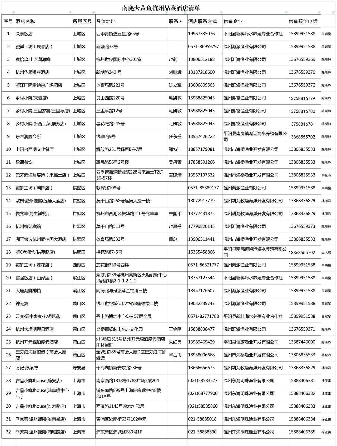 杭州市民可以联系以下相关酒店,并通过杭州吃货微信公众号、潮新闻APP等领取大黄鱼免费品鉴券,前往相关酒店打卡品鉴。